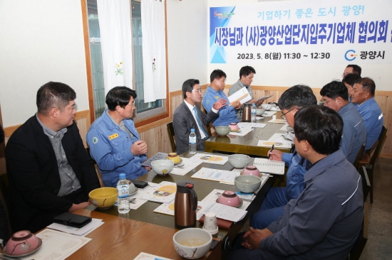 (전남=NSP통신) 김성철 기자 = 광양시는 지난 8일 광양산업단지입주기업체협의회 기업 대표와 간담회를 열고 입주기업체의 현안과 애로사항을 청취하는 소통의 자리를 가졌다고 밝혔다.