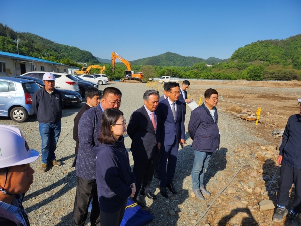 이기흥 대한체육회장은 체육인재개발원 공사현장을 차례로 둘러보고 공사 진행상황과 앞으로의 계획에 대해 설명을 들은 뒤 장흥군에 필요한 정책과 비전을 제시했다.