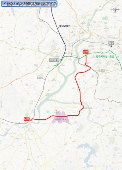 광주-나주 광역철도사업은 제4차 국가철도망계획(2021~2025)에 반영된 국책사업으로 총 사업비 1조5192억원이 투입된다.