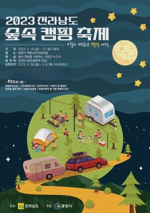 (전남=NSP통신) 김성철 기자 = 광양시는 오는 5월 19일~21일까지 3일간 천혜의 자연환경을 자랑하는 광양백운산자연휴양림에서 ‘2023 전라남도 숲속 캠핑 축제’가 열린다고 밝혔다.