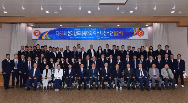 (전남=NSP통신) 서순곤 기자 = 제62회 전라남도 체육대회가 12일부터 15일까지 완도군에서 열린다. 여수시는 참가선수단을 구성하고 결단식을 가졌다.