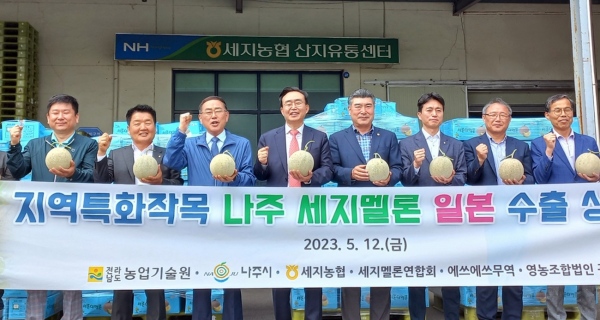 나주시(시장 윤병태)는 최근 세지농협 멜론산지유통센터에서 달콤한 향과 풍부한 과즙을 자랑하는 세지멜론 일본 수출 상차식을 가졌다고 15일 밝혔다.