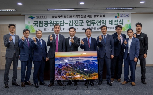 국립공원공단과 총 200억 원의 사업비 투입 ‘월출산 국립공원 관리와 관광 활성화를 위한 MOU’를 체결···금릉 경포대, 백운동 원림, 천년고찰 무위사, 강진다원 등 연계 생태탐방 프로그램 활성화 기대