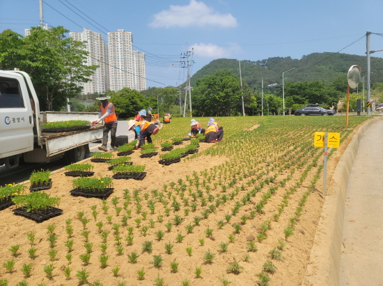 (전남=NSP통신) 김성철 기자 = 광양시는 사계절 꽃이 있는 아름다운 시가지 조성과 쾌적한 도시환경 조성을 위해 여름꽃 식재로 구슬땀을 흘리고 있다.