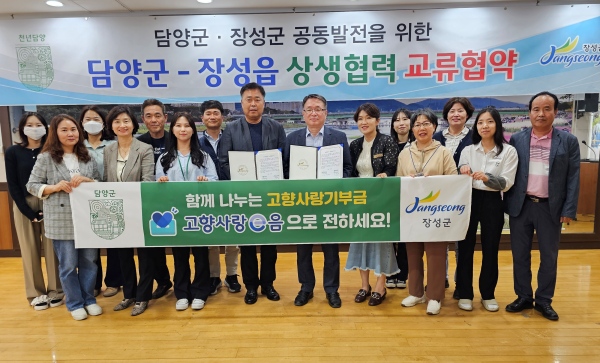 (전남=NSP통신) 김용재 기자 = 담양군 문화체육과와 장성군 장성읍사무소가 지난 22일 ‘담양군-장성군 고향사랑기부제 상호 기부’에 동참하며 훈훈한 정을 나눴다.