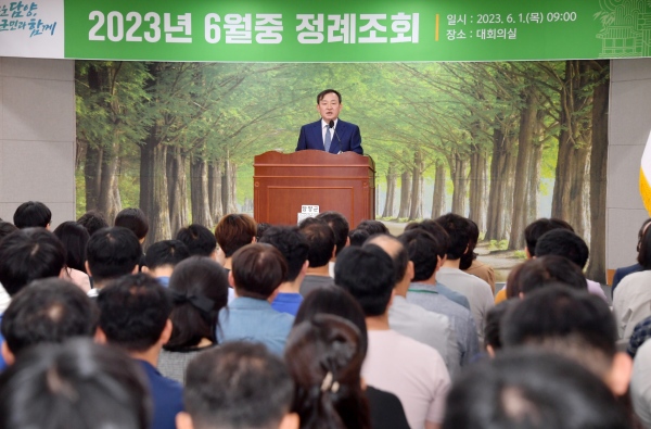 (전남=NSP통신) 김용재 기자 = 담양군(군수 이병노)은 1일 군청 대회의실에서 공직자 200여 명이 참석한 가운데 6월 정례조회를 가졌다.