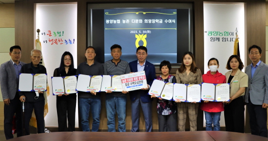 행사에서 관내 초·중·고·대학교에 재학 중인 농업인 다문화 가정의 자녀 9명을 대상으로 장학금과 장학증서를 전달했다.