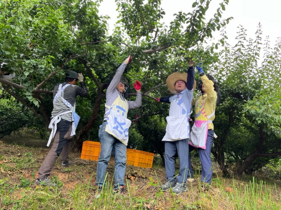 시는 5월 말부터 일손 부족으로 어려움을 겪고 있는 지역 내 고령농가와 부녀농가, 장기 입원 농가 등을 대상으로 공무원과 지역 기관, 단체와 기업들이 한마음으로 매실 수확 작업을 도왔다.