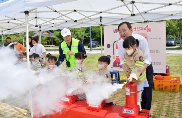행정안전부는 민관 협업으로 안전 체험시설이 부족한 지역에 찾아가 분야별 안전 체험교육을 운영하고 있으며, 군은 지난 해에 이어 어린이 안전체험교실을 진행했다.