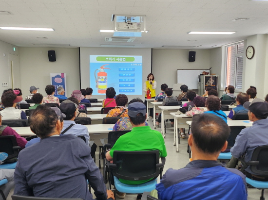 교육은 남도안전학당 최현정 강사를 초빙해 ▲보건 안전 및 감염병 예방 ▲교통안전(보행) 수칙 ▲화상 응급처치 ▲화재 발생 시 대피 방법과 소화기 사용법 ▲낙상사고예방 등의 내용으로 동영상 시청과 실습 등을 통해 알기 쉽게 진행됐다.