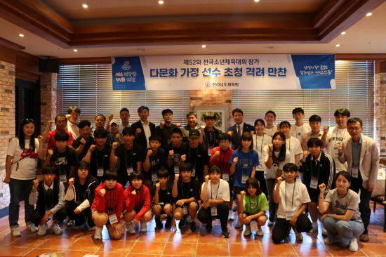 전라남도체육회는 “지난 15일 목포시 인근 식당에서 ‘제52회 전국소년체육대회’에 참가한 다문화가정 선수 39명을 초청해 만찬 및 격려금, 격려물품 등을 전달했다”고 밝혔다.