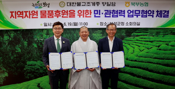 (전남=NSP통신) 위종선 기자 = 보성군(군수 김철우)은 저소득층 후원을 위해 대한불교조계종 향일암, 북부농협과 지역자원 물품 후원 민·관 협력 업무협약을 체결했다.