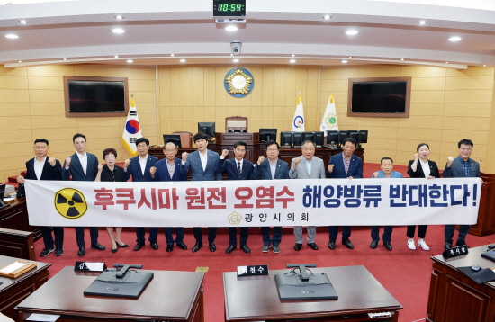 한편 시의회는 정례회를 폐회하고 ‘후쿠시마 오염수 방류 반대’ 퍼포먼스를 본회의장에서 진행했다. 앞서 시의회는 지난 4월 ‘일본 원전 오염수 방류 피해 대책 특별법 제정 촉구 결의안’을 채택하였으며, 최근 최대원 의원은 ‘후쿠시마 원전 오염수 해양 방류 계획에 따른 광양시의 대응 방안 제안’에 대해 5분 발언을 한 바 있다.