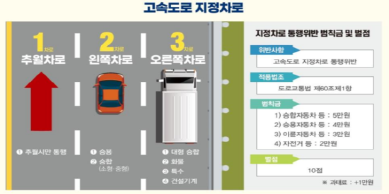 또한 지정차로 위반차량을 발견할 경우 적극적인 계도를 하고, 상습·고질적인 위반 운전자는 단속도 병행할 예정이다.