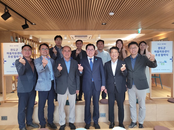 (전남=NSP통신) 김현 기자 = 전남 완도군과 대우재단이 지난 27일 완도군 마음치유센터 조성을 위한 업무 협약을 체결했다.