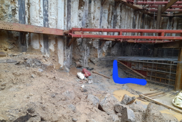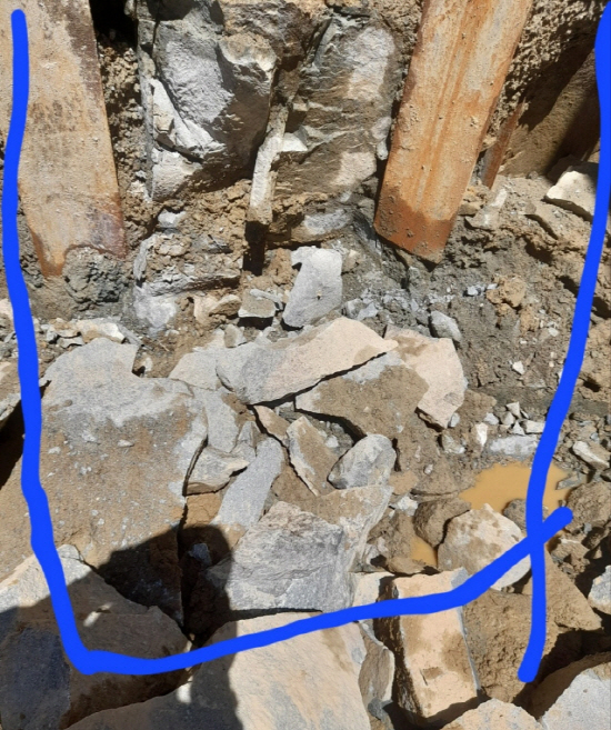 NSP통신-주상복합건물 지하 터파기 공사에서 흙막이를 위한 파일이 깊이 박혀야하는데 암반으로 인해 정상 시공되지 않았다고 제보자가 의혹을 제기하고 있다. (사진 = 제보자)