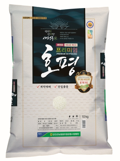 ‘프리미엄 호평’은 최신 정미시설에서 피해립, 유색립, 싸라기, 이물질을 제거한 96% 이상 무결점 완전미로 강진 쌀의 대표 브랜드이다.