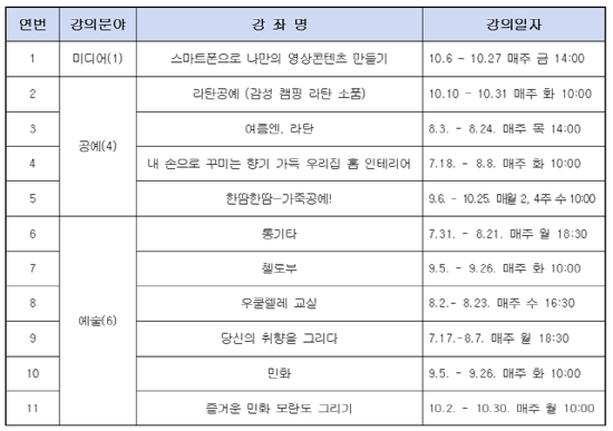이현주 청년일자리과장은 “청년들이 상호 성장할 수 있는 다양한 강좌를 마련했다”며 “하반기에도 지역 청년들의 많은 관심과 참여를 바란다”고 말했다.