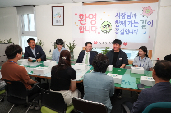 정 시장은 직원들과 소통의 시간을 통해 도로과의 업무 환경 개선과 인력 보충에 대한 계획을 공유하고, 직원들도 부서 현안과 고충 민원 처리의 어려움, 상호 존중하는 조직문화 등 다양한 의견을 개진했다.