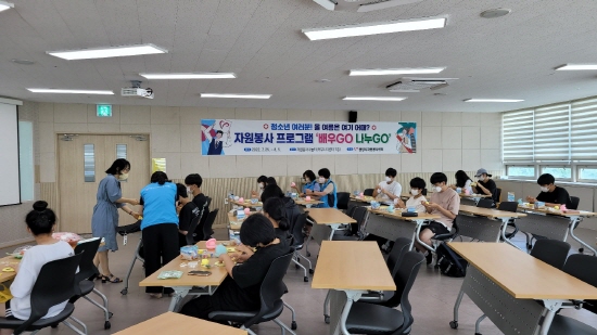 여름방학 자원봉사 프로그램은 자원봉사 기본교육과 재생 종이공예 연필꽂이, 휴지케이스, 에코백 및 파우치, 디퓨저, 천연아로마 캔들, 제빵 만들기 등 6개로 구성된다.