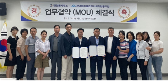 (전남=NSP통신) 김성철 기자 = 광양시 광영동사무소는 지난 21일 광영동마을관리사회적협동조합(이사장 김윤선)과 업무협약을 체결했다.