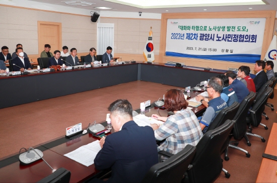 (전남=NSP통신) 김성철 기자 = 광양시는 지난 21일 시청 상황실에서 ‘2023년도 제2회 노사민정협의회’를 개최하고 적극적인 중재노력에 나섰다고 밝혔다.