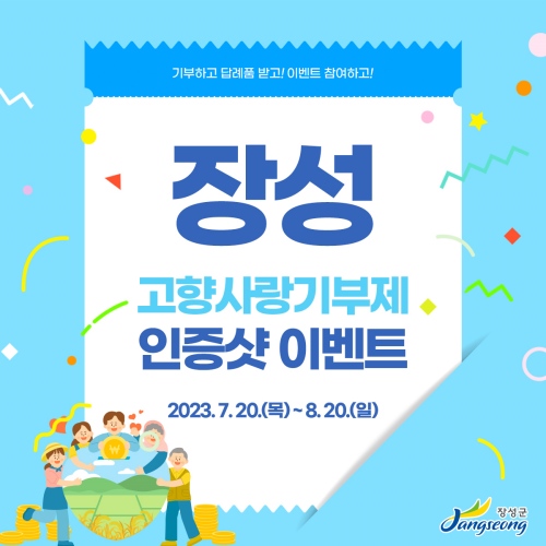 (전남=NSP통신) 김용재 기자 = 장성군이 오는 8월 20일까지 고향사랑기부제 활성화를 위한 ‘고향사랑기부 인증샷 이벤트’를 연다.