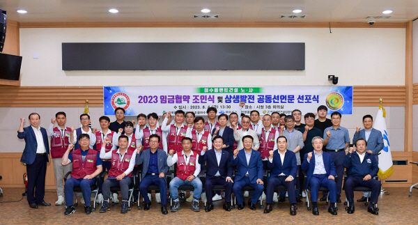 이날 선포식은 전국플랜트건설노조여수지부와 여수산단건설업협의회인 노사 양측이 지난달 올해 임금협약을 체결 후 이날 최종 임금협약 조인식 후 마련된 것이다.