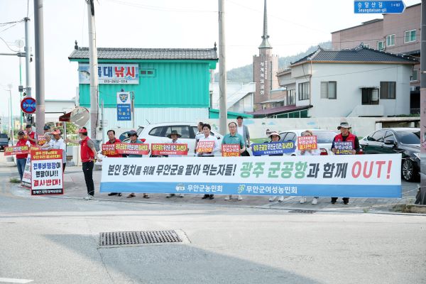 이날 캠페인은 광주 군공항 무안 이전 결사반대에 대한 범군민적 거리 캠페인에 본격적인 시작을 알리는 것으로 무안군농민회, 무안군여성농민회, 청계면이장협의회, 청계면지역대책위원회 회원 40여 명이 참여해 폭염에도 불구하고 이전 반대 여론확산에 최선을 다 했다.