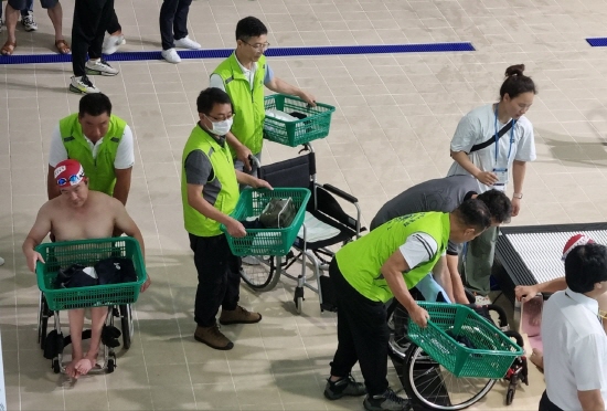 이번 봉사활동은 장애인 수영경기 특성상 봉사자는 사전 교육 후 선수대기실에서 선수들과 함께 수영경기장으로 입장해 선수가 벗어놓은 옷 바구니를 들고 선수가 대회를 마치고 나오면 선수와 함께 탈의실까지 동행하는 봉사활동이다.