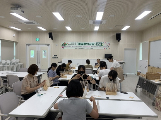 ‘예술창의공방’은 매월 셋째 주 금요일에 초등학생부터 성인까지를 대상으로 지역 내 공방이나 강사를 섭외해 시민들이 다양한 예술체험을 접할 수 있는 기회를 제공하는 프로그램으로, 분기별 1회는 환경과 예술을 결합한 ‘초록공방’을 주제로 운영하고 있다.