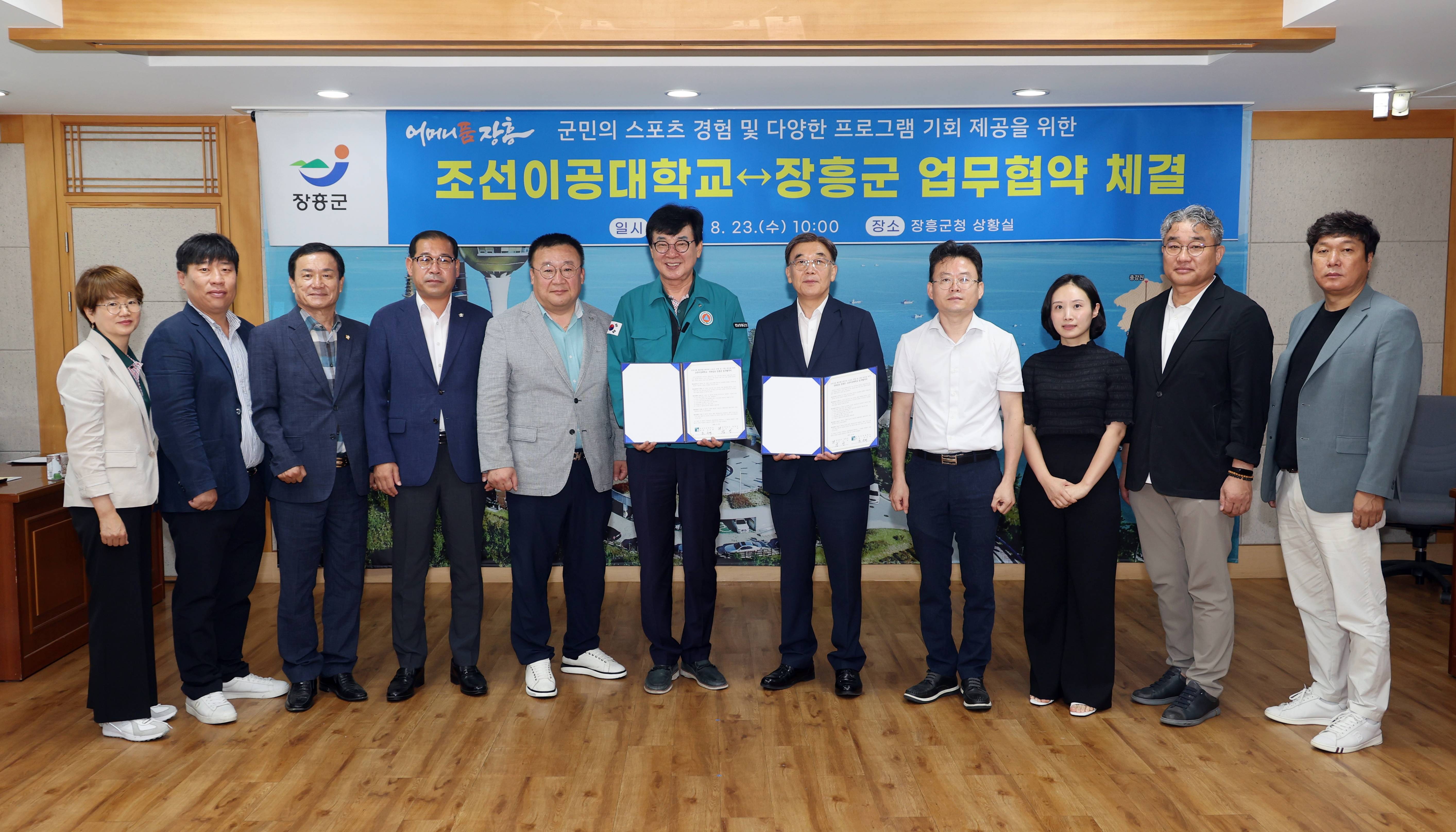 (전남=NSP통신) 김용재 기자 = 장흥군이 23일 조선이공대와 지역민의 스포츠 경험 확대와 웰빙 헬스케어 제공을 위한 업무협약을 체결했다.