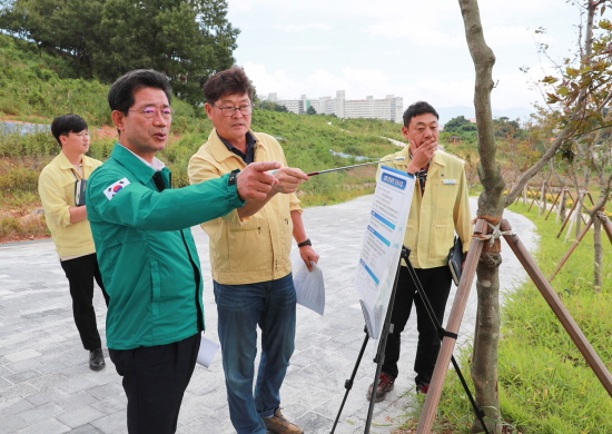 정 시장은 현장의 여건과 해결방안에 대해 논의하고 시민들이 편안한 쉼을 누릴 수 있는 안전하고 주민 친화적인 공간이 되도록 공사 마무리를 철저히 할 것을 주문했다.