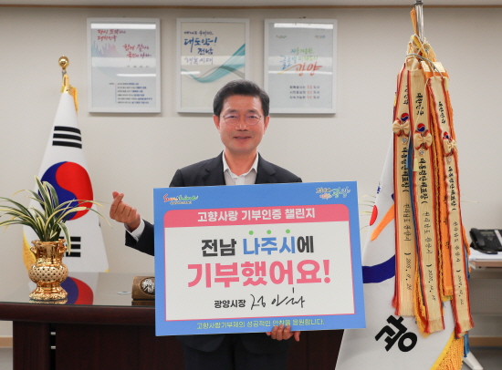 또한 정 시장은 혁신도시인 전남 나주시의 고향사랑기부제 활성화를 응원하며 기부금을 기탁한 후 윤병태 나주시장을 다음 챌린지 주자로 지명했다.