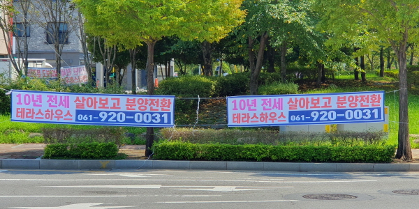 이들 아파트 분양업체의 불법 현수막이나 의류유통업체의 덤핑벽보는 여수를 찾는 관광객이나 시민들의 눈살을 찌푸리게 해 관광여수 이미지에도 흠이 되고 있다.