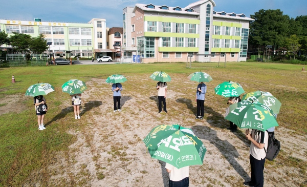제작된 공유 우산 ‘연두’는 군에 버려진 폐현수막을 재활용해 제작됐으며, 무료로 대여할 수 있도록 관내 학교, 읍면사무소 등에 비치할 계획이다.