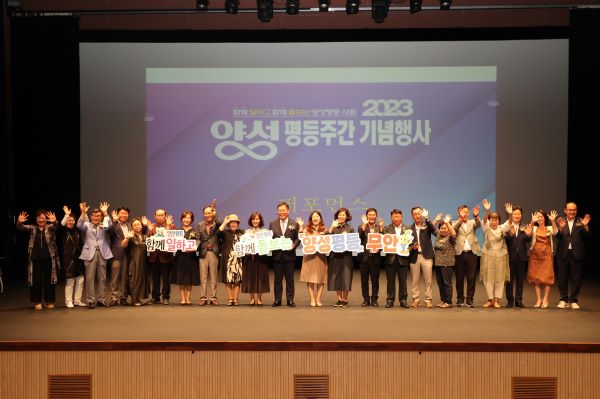 (전남=NSP통신) 김현 기자 = 전남 무안군은 양성평등주간을 맞아 9월 7일 “함께 일하고 함께 돌보는 양성평등 무안”이라는 주제로 승달문화예술회관에서 2023년 양성평등주간 기념행사를 개최했다.