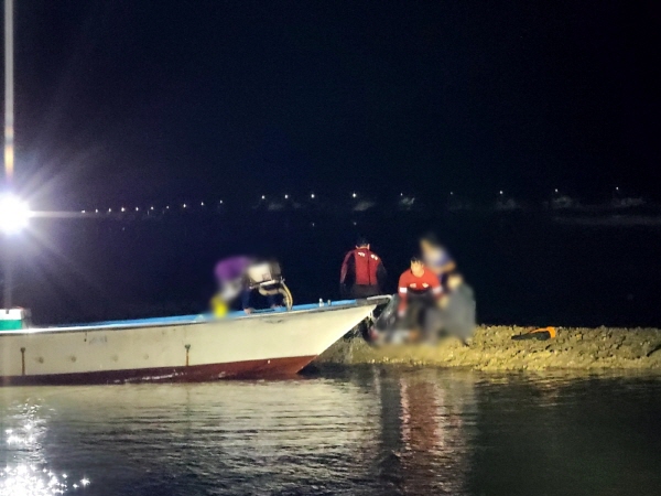 여수해경이 광양시 광영포구 인근 해상 간출여에서 어선 A호를 구조하고 있다. (사진 = 여수해경)