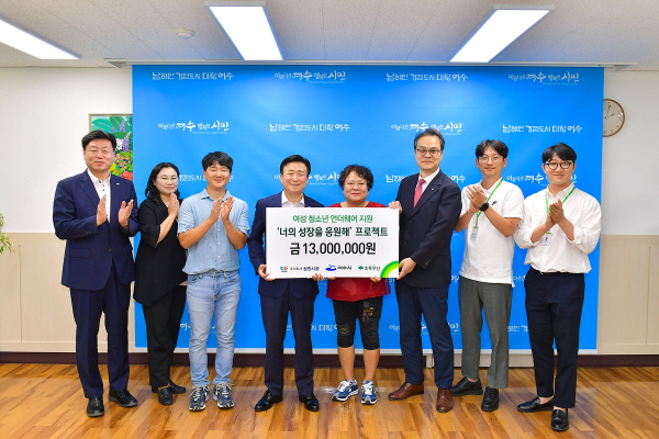 시장실에서 열린 전달식에는 정기명 여수시장과 박하현 청원시공 대표이사, 김유성 초록우산 어린이재단 전남지역본부장 등이 참석했다.