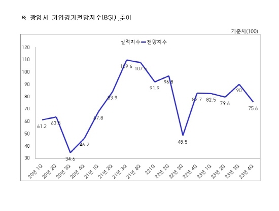 광양상공회의소, 광양지역 기업 2023년 4/4분기 기업경기 전망지수 75.6P