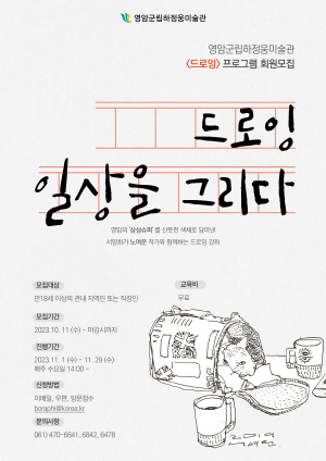 (전남=NSP통신) 강현희 기자 = 영암군립하정웅미술관이 ‘드로잉, 일상을 그리다’ 프로그램 수강생을 모집한다.