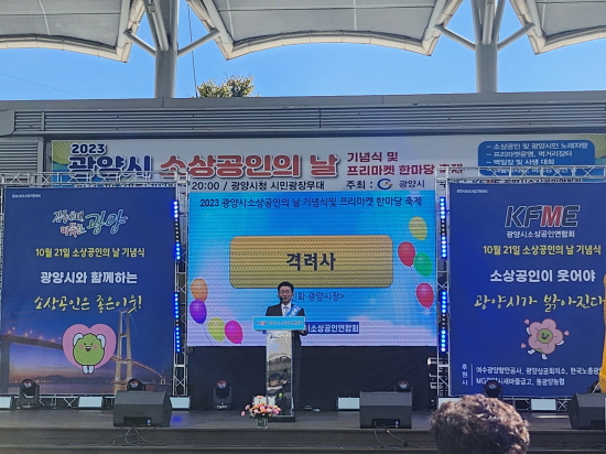 (전남=NSP통신) 김성철 기자 = 광양시는 지난 21일 시청 앞 야외공연장에서 소상공인들 간 소통의 장을 마련하는 ‘2023 광양시 소상공인의 날 기념식 및 프리마켓 한마당 축제’를 성황리에 마쳤다.