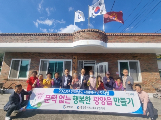 ‘문턱 없는 행복한 광양읍 만들기’는 2023년 전라남도 사회혁신 공모사업으로 광양시가 무장애도시를 선포함에 따라 광양읍지역사회보장협의체에서 경로당 주 출입구에 경사로를 설치하여 어르신들의 안전사고 방지 및 보행환경 개선을 위해 민관이 함께 추진하는 사업이다.