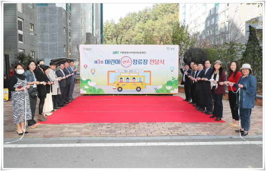 전달식에는 정인화 광양시장, 이광용 어린이보육재단 이사장, 김인수 입주자대표회장, 김성기 이장, 정정택 노인회장 등을 비롯한 입주자 대표 등 30여 명이 참석해 어린이 안심 정류장 설치를 축하했다.