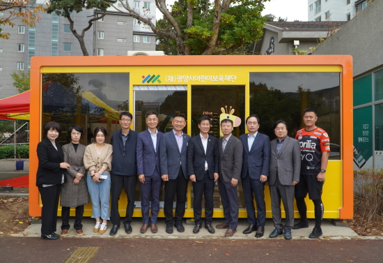 전달식에는 서영배 광양시의장, 정구호 광양시의회 총무위원장, 신용식 광양시의원, 김희영 어린이보육재단 상임이사, 방기태 교육보육센터소장 등 30여 명이 참석한 가운데 ‘어린이 안심 정류장’ 설치를 축하했다.