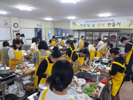 영양교육의 일환인 조리 실습은 보충식품을 다양하게 활용한 이유식 및 간식 만들기를 통해 잘못된 식생활을 개선하고 바른 식습관 형성을 돕기 위해 마련됐다.
