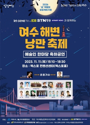 한편 공사 관계자는 이번 공연 전후로 K-문화 청소년 페스티벌도 개최되고, 박람회장 스카이타워 야간개장도 이용할 수 있어 지역민과 관광객들이 여수 밤바다의 아름다운 야경과 낭만적인 도시 여수를 함께 느낄 수 있을 것이라고 밝혔다.
