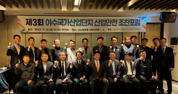 (전남=NSP통신) 서순곤 기자 = 한국산업단지공단 전남지역본부(본부장 염동일)는 10일 여수 소노캄호텔에서 산업안전보건 관련 관계법령 및 적용사례를 소개하는 제3회 여수국가산단 산업안전 조찬포럼을 개최했다.