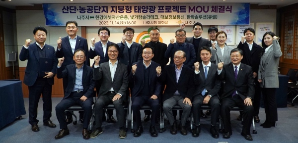 이 날 협약식에는 윤병태 나주시장, 손진 한강에셋자산운용 대표, 유성민 한화솔루션 영업총괄, 김상욱 대보정보통신 대표, 윤양배 빛가람솔라테크 대표를 비롯한 협약 업체 관계자 20여 명이 참석했다.