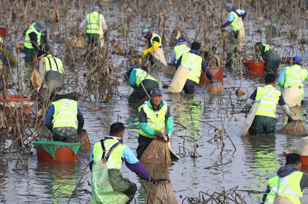 (전남=NSP통신) 김용재 기자 = 강진군 병영면 중고저수지 일원에서 지난 15일 군 관계자와 주민, 향우 등 100여 명 참석한 가운데 전통문화를 계승하기 위한 가래치기 행사가 열렸다.